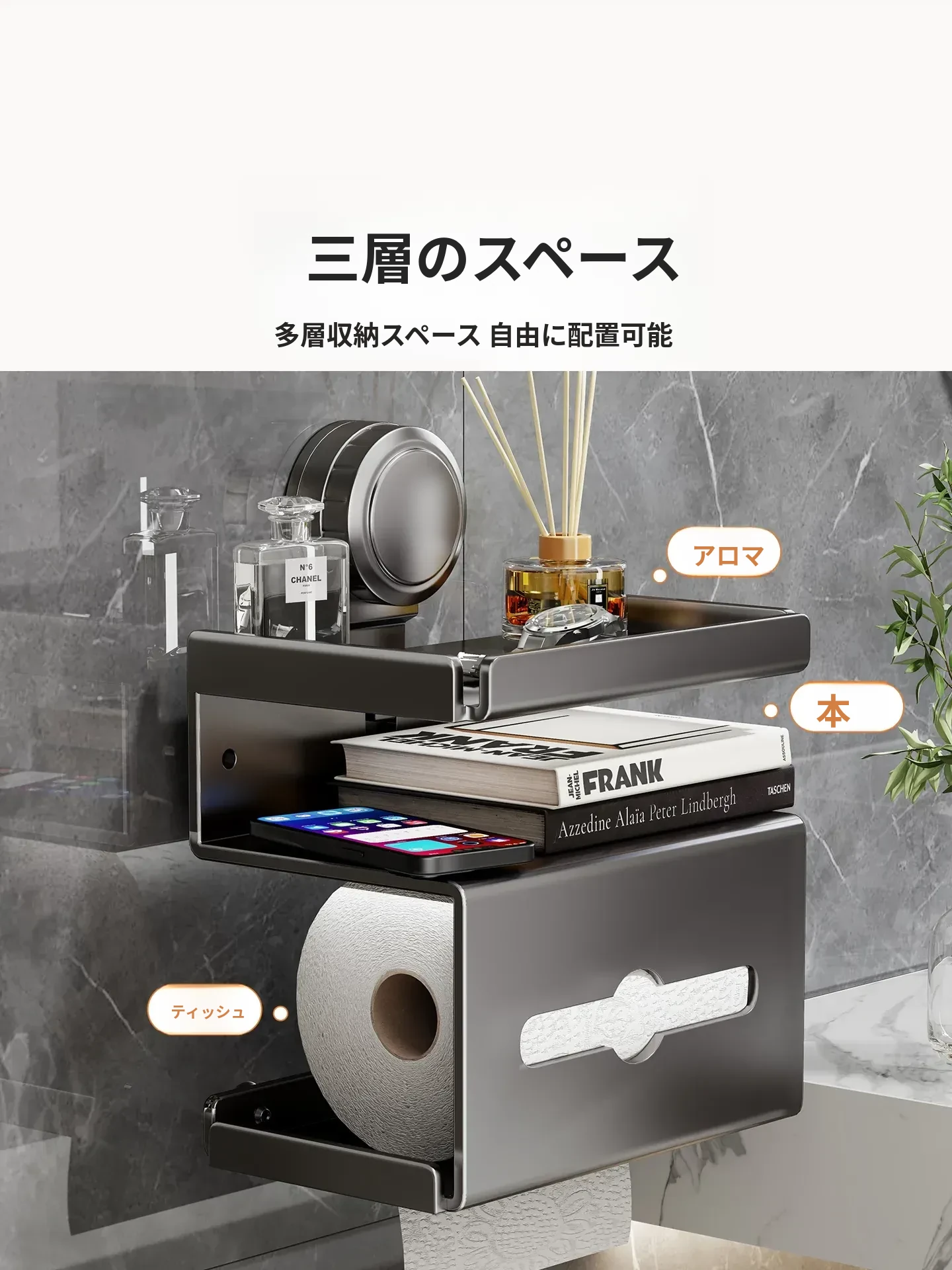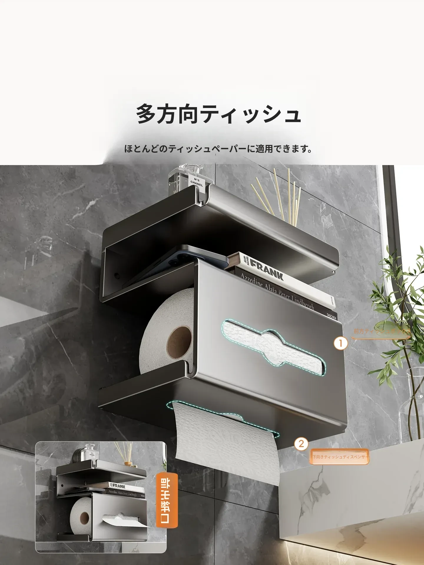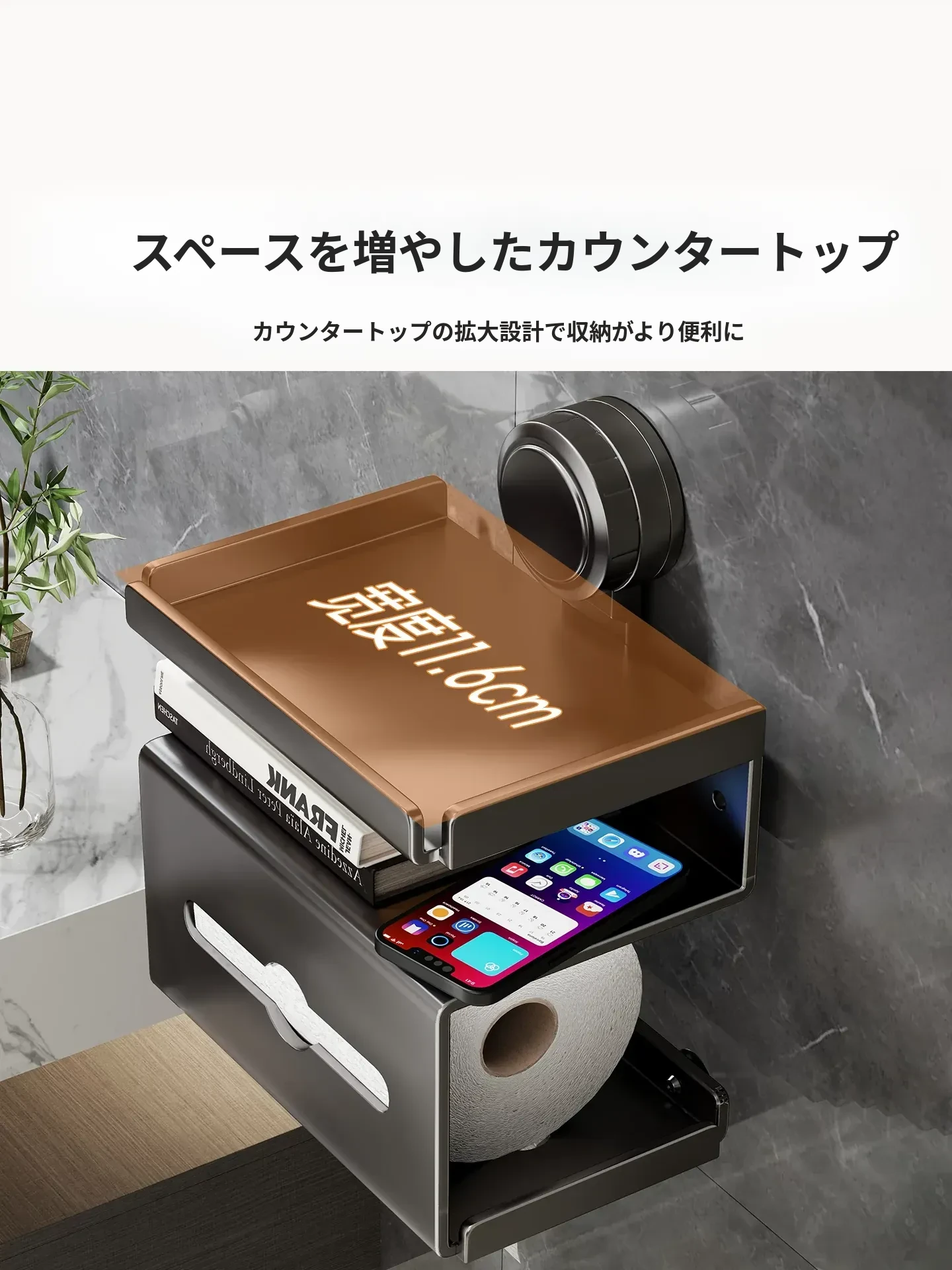 吸盤付きトイレットペーパー収納ラック - 壁掛け式でトイレをスッキリ整理!穴を開けずに簡単設置、使いやすい衛生的な紙タオルホルダー。快適なトイレタイムを実現します!
