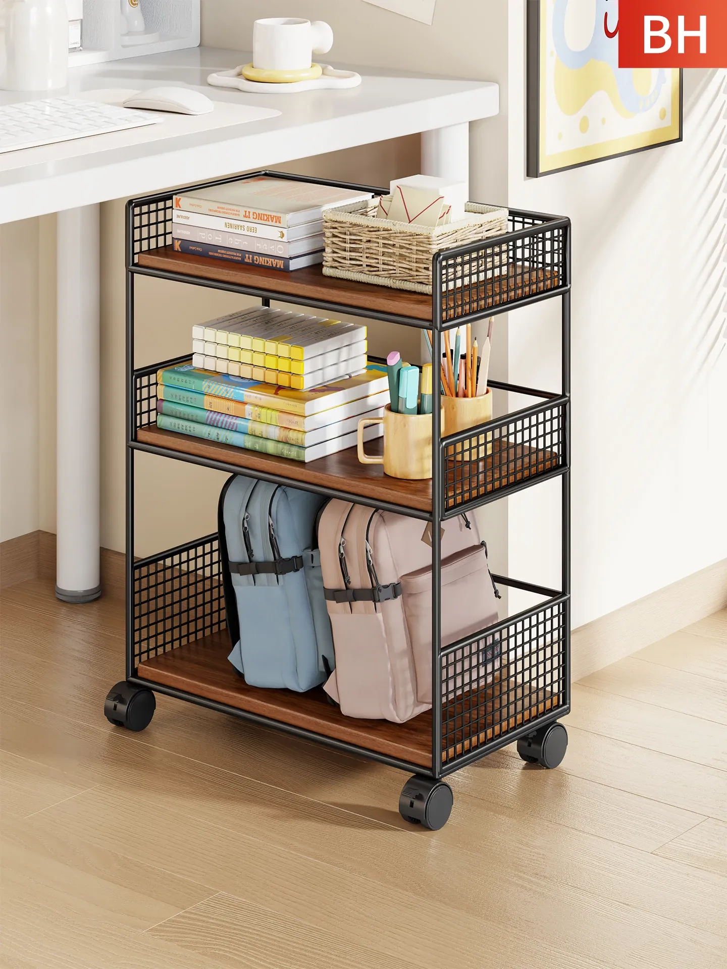 移動可能な書籍収納ラック!多層構造で、書籍やリュックをスッキリ整理。デスク下にぴったりフィットし、キャスター付きで簡単移動!家庭やオフィスに最適な便利アイテム。