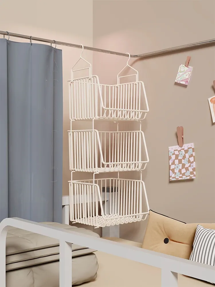 壁掛け収納ラック - 宿舎にぴったり!ベッドサイドをスッキリ整理できる、穴を開けずに取り付け可能な便利なバスケット。学生生活をもっと快適に!