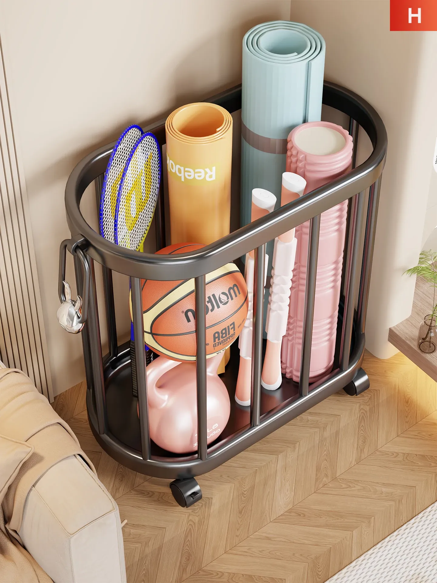 ヨガマット収納バスケット 大容量 移動式キャスター付き 家庭用フィットネスグッズ整理の必需品 スポーツ道具収納バスケット