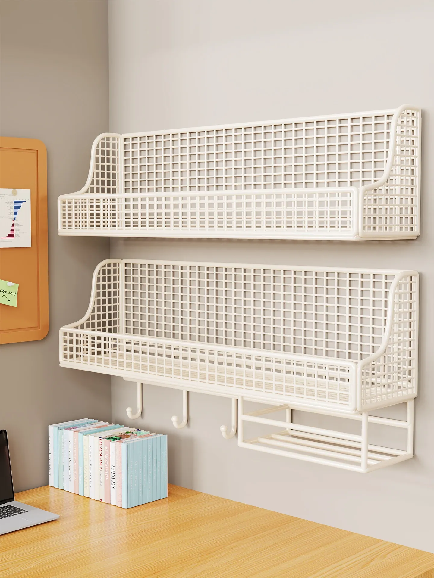 宿舎の壁に取り付ける便利なフックなし収納ラック!上下二段ベッドに最適な壁掛け書棚、寝室をすっきり整理する必需品!ベッドサイドにぴったりな収納バスケット付き!