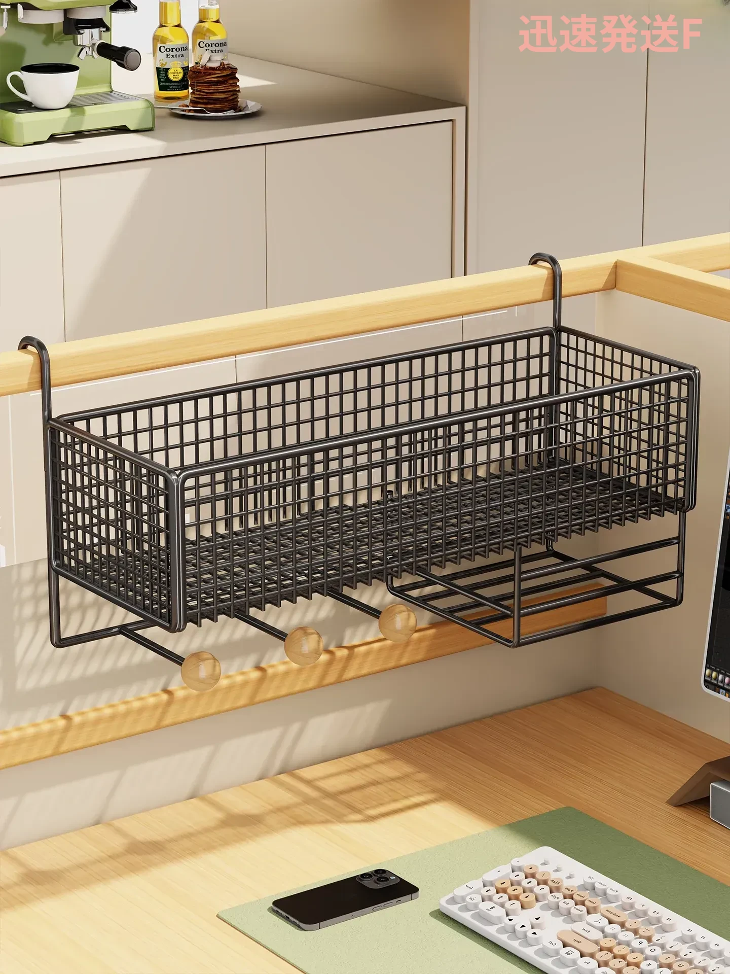 オフィスデスク用マルチ機能吊りラック - スペースを有効活用!整理整頓が簡単にできるフック付きバスケットで、あなたの作業環境をスッキリ整えましょう。収納の新しいスタイルを実現!