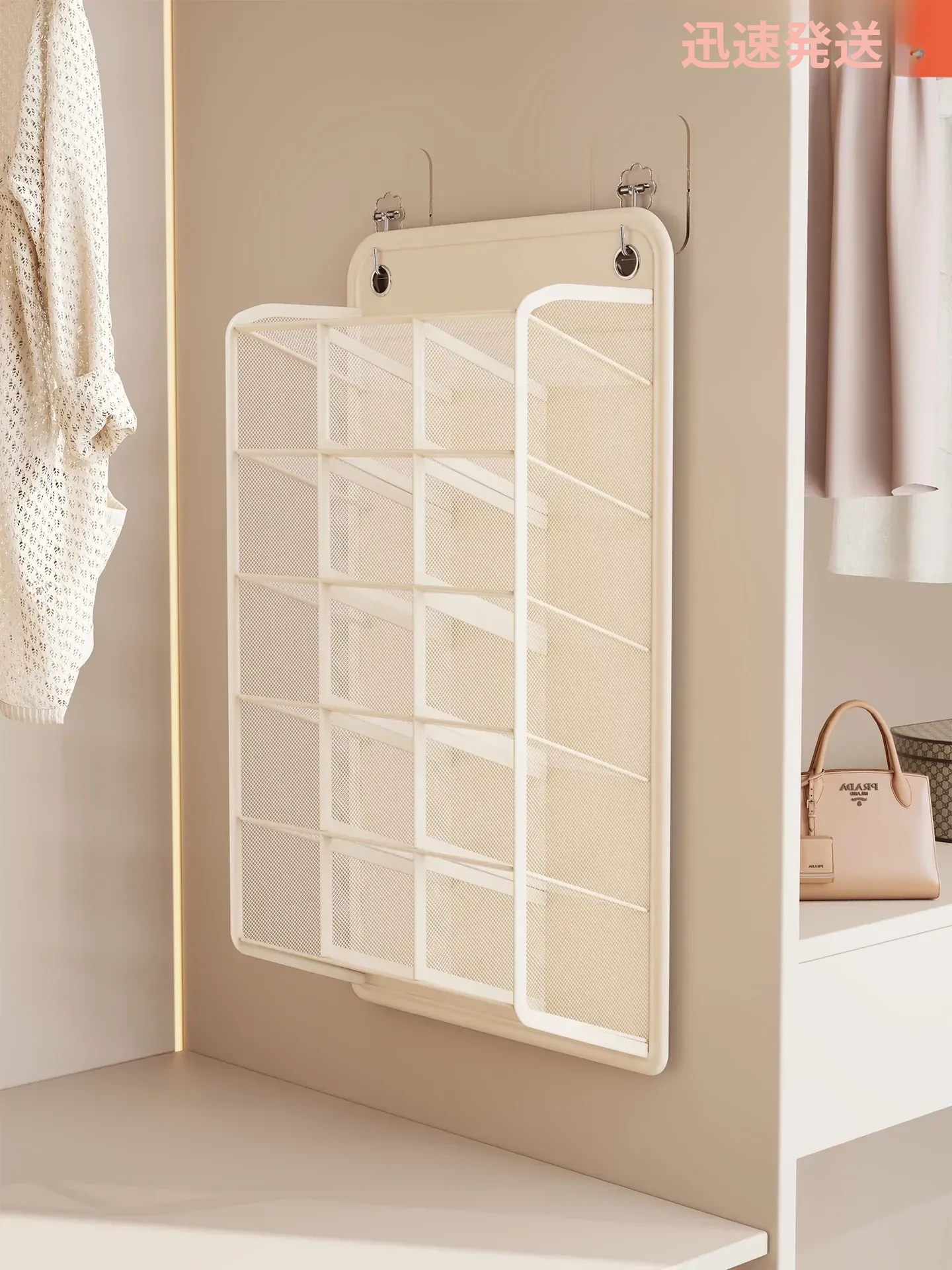 収納力抜群!穴あけ不要のハンギングインナー収納ポケット - 家庭用、クローゼットに便利な仕切り付きで、下着や靴下もスッキリ整理!