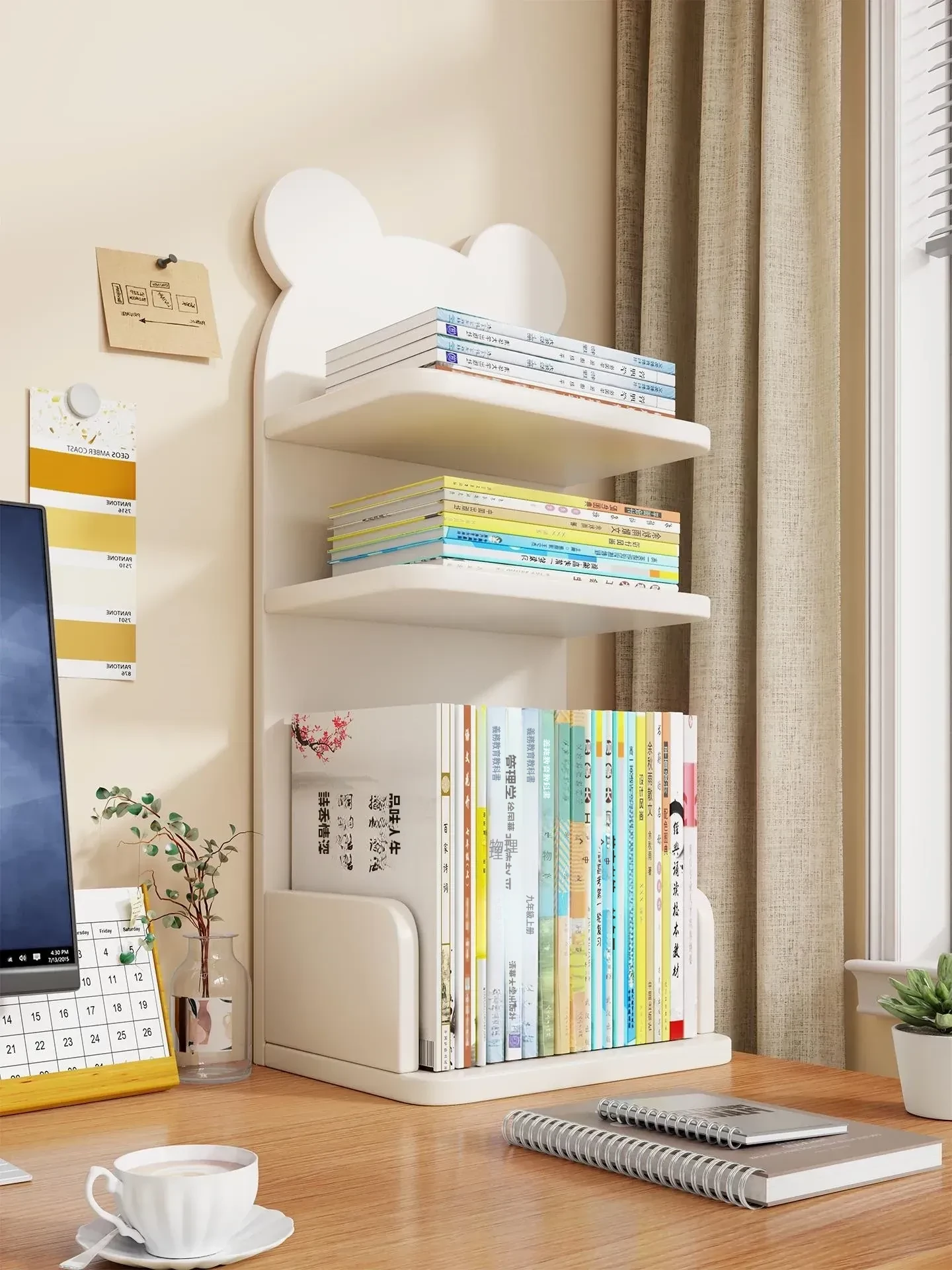 学習用デスクに最適!A4ファイル整理に役立つ多層収納ラック - 書籍や文具をスッキリ整理!窓辺でも使えるスタイリッシュなデザイン!