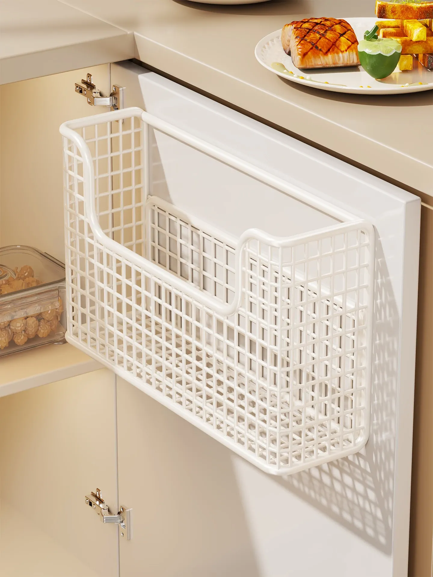 キッチンキャビネット扉用ラップ収納ラック - 壁掛け式で便利!冷蔵庫内側やキャビネットドアに取り付け可能な収納ボックス、スペースを有効活用してキッチンをスッキリ整理!