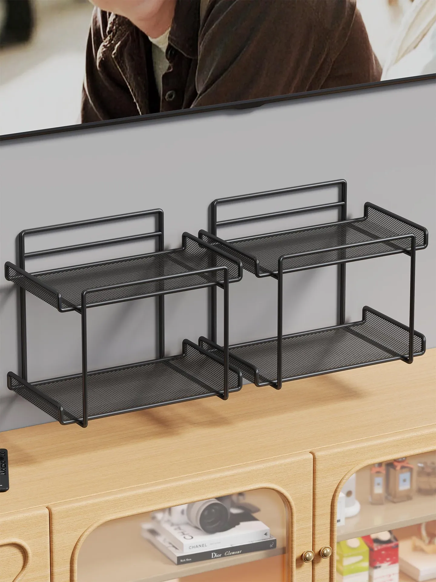 穴あけ不要!おしゃれなルーター置き架 – リビングにぴったりな壁掛けWi-Fi収納ボックス & テレビボックスホルダー。空間を有効活用し、すっきりとした印象に!