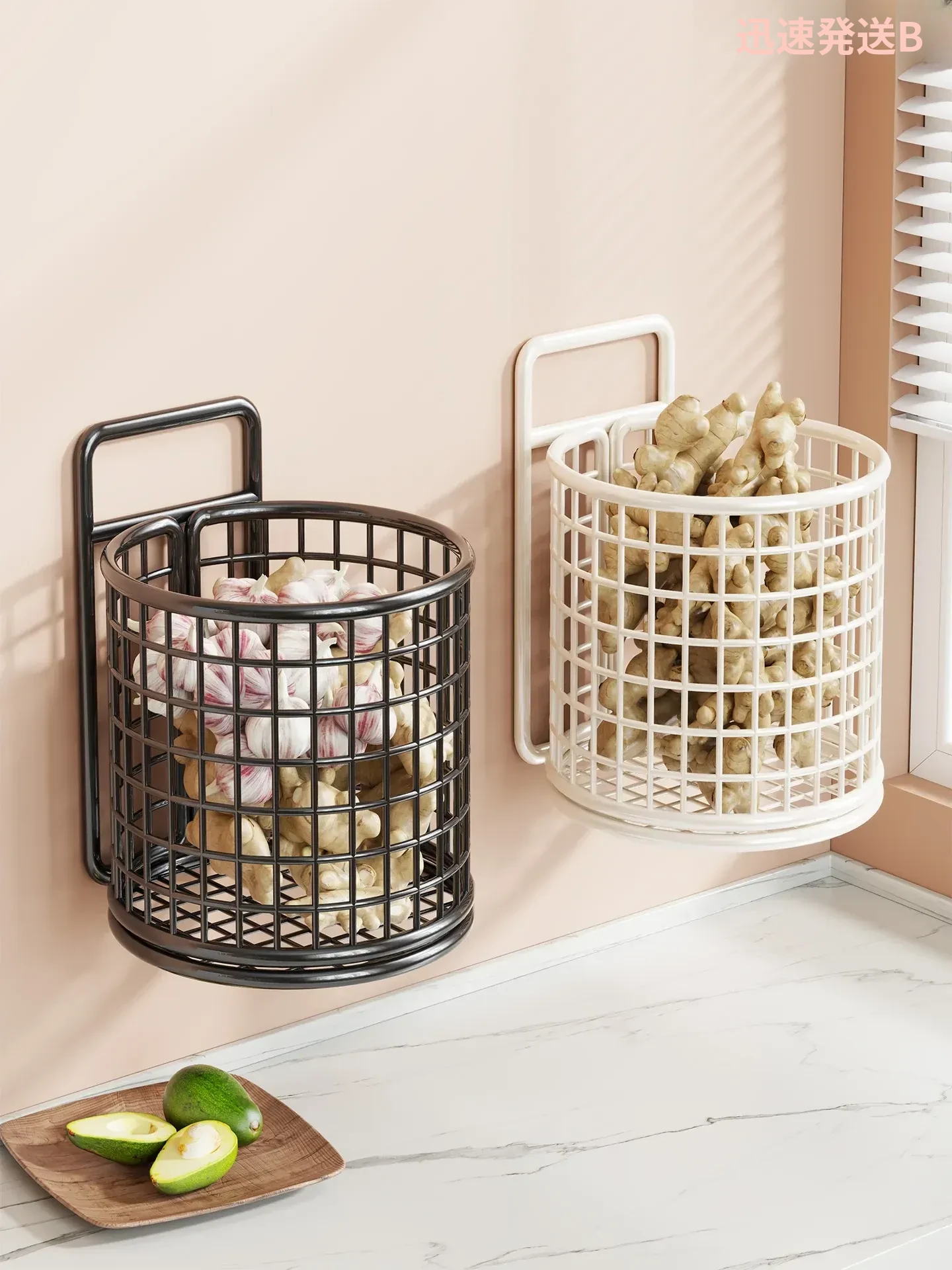 キッチン収納ラック 壁掛け式 フック不要の生姜・ニンニク収納ボックス - スペースを有効活用し、整理整頓を簡単に!便利な調味料入れで、料理がもっと楽しくなる!
