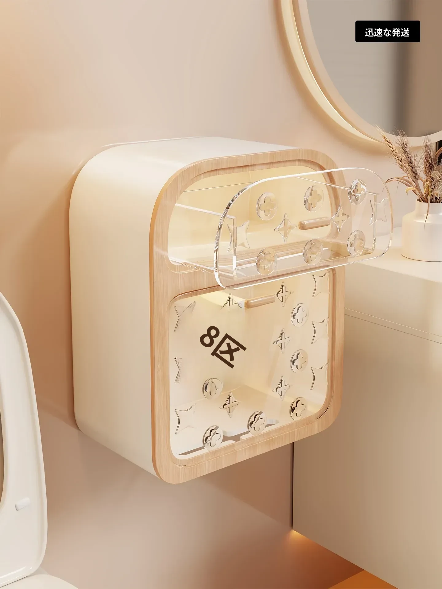 防水・壁掛け式トイレットペーパーケース|中華風デザインでおしゃれなお家に|穴を開けずに簡単取り付け|トイレットペーパー収納ラックとしても使用可!
